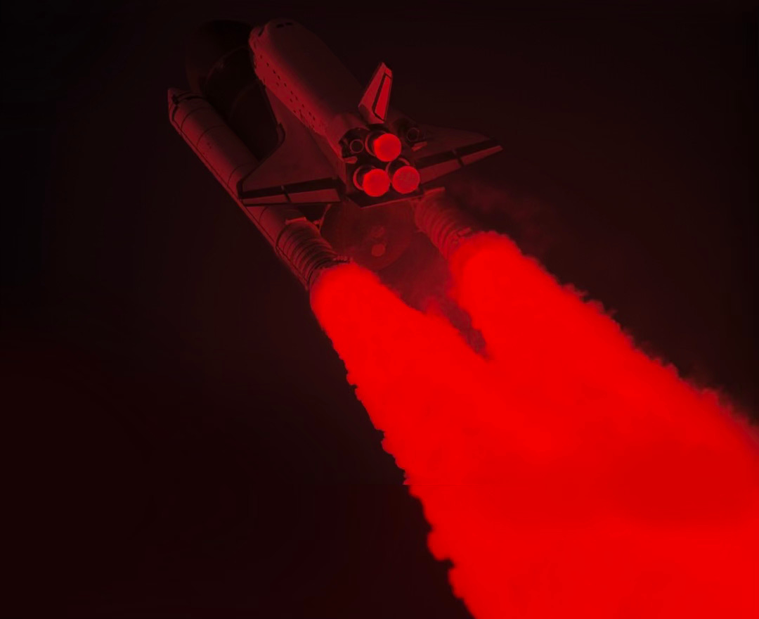 Inside the shuttle the atmosphere was electric when we realised they were gone, and that our path forward was clear. Preflight checks, spacesuits on, engines tested — we ran through the whole thing, just like we had done hundreds of times back in training. It was difficult without any tower, or voice in your ear, but we did not need one. And so, before long, so fast that the time seemed to have just slipped away, the night was lit by a new source — an angry, fiery dragon that screamed into the darkness for a second, then began to ascend into the black, rising into the air on a pillar of fire.